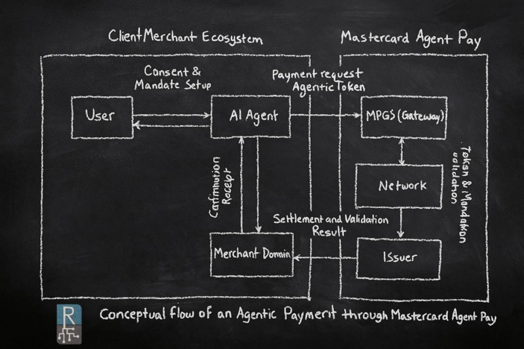 The first concrete implementation is taking shape through Agent Pay, introduced by Mastercard on its Payment Gateway Services (MPGS) platform. In this model, AI agents are registered and verified within Mastercard’s trust framework, defining how they can be recognized and authorized to transact securely.